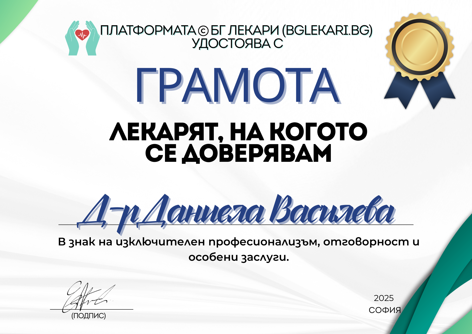 Д-р Даниела Василева е завършила МУ-Варна, специалист по образна диагностика.