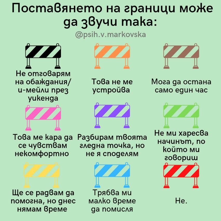 - Съобщавайте своите граници по уважителен начин и уважавайте границите на другите.