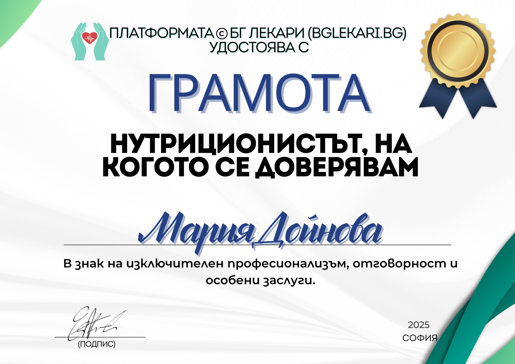 Аз съм Мария Дойнова и съм нутриционист, консултант по правилно и клетъчно хранене.