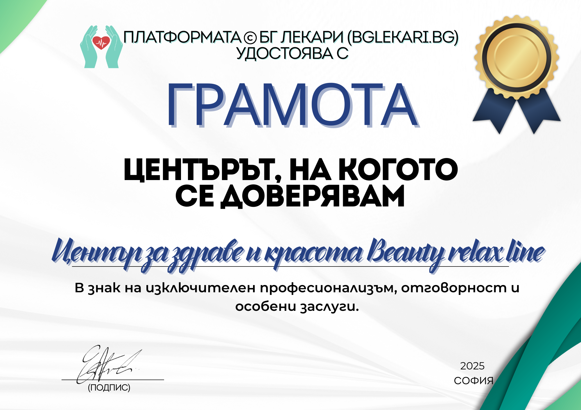 В Beauty Relax Line ще откриете място за грижа, баланс и възстановяване. Центърът предлага широка гама от терапии и процедури, съчетаващи съвременни технологии и природни методи за поддържане на здравето и красотата.