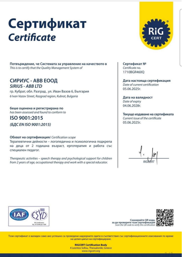 - Сертификат Монтесори Метод за деца със СОП /специални образователни потребности/.