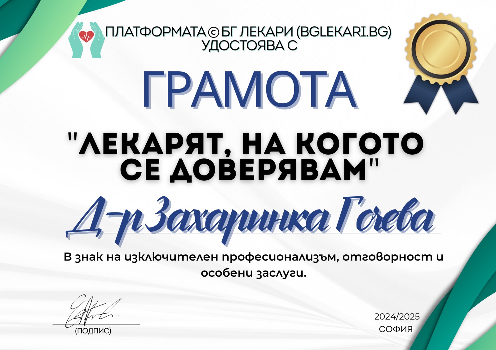 Д-р Захаринка Гочева е семеен лекар и педиатър.
