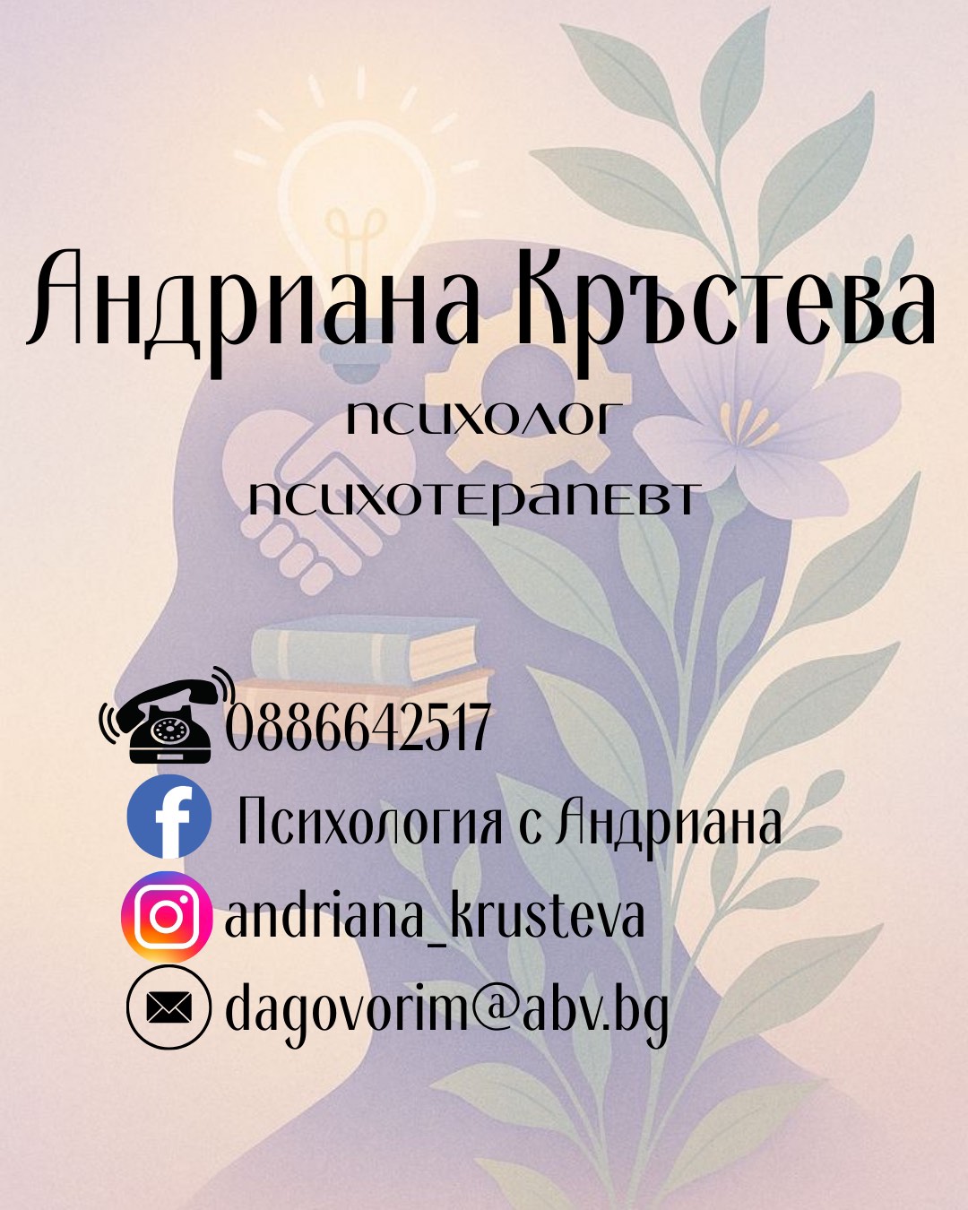 Андриана Кръстева - Психолог-психотерапевт. Детски психолог. Неврофийдбек терапевт. | 0886642517 | Онлайн консултации от цялата страна и чужбина