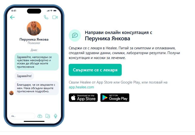 или ОНЛАЙН КОНСУЛТАЦИЯ през платформата Healee тук: